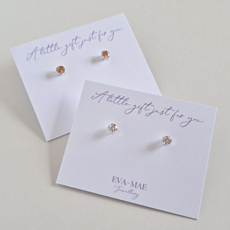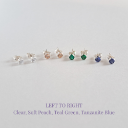 These simple stud earrings have the prettiest sparkle, featuring 4mm faceted round cubic zirconia stones set in sterling silver ear posts.